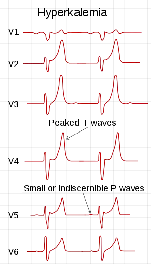 | نوار قلب showing precordial leads in hyperkalemia. | |