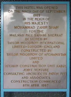 ساخت این هتل در ۱۹ فروردین (۱۹ حمل) ۱۳۴۶ خورشیدی آغاز شد و در ۱۸ شهریور (۱۸ سنبله) ۱۳۴۸ به بهرهوری رسید. این هتل را گروه هتلهای اینترکنتیننتال با همکاری شرکتهای بریتانیایی Taylor Woodrow و Paton Pitt و شرکتهای محلی افعان احداث کرد.