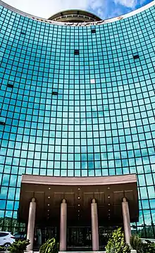 ساختمان هتل پارس ایل گلی دارای نمایی تمام شیشه است.