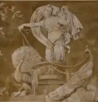 - عصای جواهرنشان: عصای سلطنتی[پ 23] جواهرنشان که فاختهای بر آن خودنمایی میکند و در دستان هرا قرار میگیرد.[42]