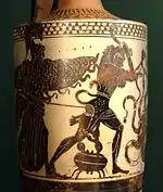 - هرکول: زمانیکه آمفیتروئون، همسر آلکمنه در خانه نبود زئوس که به آلکمنه پاکدامن علاقهمند بود خود را به شکل او درآورد و با آلکمنه همبستر شد و هنگامی که آمفیتروئون به خانه بازگشت او نیز با آلکمنه همبستر شد و هراکلس از نطفهٔ زئوس و ایفیکلس از نطفهٔ آمفیتروئون به وجود میآیند و در این زمان زئوس سوگند میخورد که فرزند او را فرمانروای میسین میکند و اینگونه دشمنی هرا با آلکمنه و هرکول شروع شد و به فرزندش ایلیثیا امر میکند که به بالین آلکمنه برود و با پای بسته جلوی او بنشیند تا که هرکول متولد نشود اما بر اساس روایات فرزند دیگر آلکمنه هفتماهه به دنیا آمده بود و طبق سوگندی که زئوس خوردهبود او فرمانروای میسن شد اما دشمنی هرا با هرکول پایانی نداشت.[54][55]