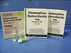 برای بسیاری از افرادی که به بیماریهای لاعلاج مبتلا هستند، تنها یک چیز میتواند اندکی به زندگی آنان کیفیت دهد: دیاستیل مرفین؛ نامی که پزشکان متخصص برای این دارو استفاده میکنند، ولی مردم عادی آن را به نام هروئین میشناسند.[37] بسته به فرایند تولید و روشی که از هروئین استفاده میشود، تأثیرات اندازهگیری شده آن بین ۱٫۵ تا ۸ برابر قویتر از مرفین است. از هروئین در مصارف پزشکی برای جلوگیری از سرفهٔ حاد و کاهش درد شدید در کودکان و بزرگسالان استفاده میکنند. یک مطالعه دربارهٔ تسکین درد، هروئین را با داروی استاندارد Hydromorphone که برای مبارزه با دردهای شدید تجویز میشود، قابل مقایسه دانست.
