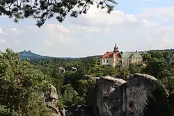 ![]() View to Hrubá Skála Castle, with Trosky Castle in the background | |