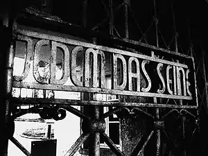 تصویر سردر ورودی اردوگاه بوخنوالد
