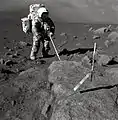 اشمیت در حال جمع آوری نمونههای قمری