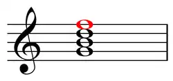 «هفتم آکورد» (نت فا به رنگ قرمز) روی درجه پنج گام دو ماژور