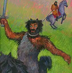 اژدها غرید و گفت: عقاب را یارای پریدن بر این دشت نیست و ستاره این زمین را به خواب نمیبیند. تو جان به دست مرگ سپردی که پا در این دشت گذاشتی. نامت چیست؟ جای آن است که مادر بر تو بگرید.[3]