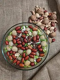 در لغتنامهٔ دهخدا، معنای هفتمیوه به صورت «[ هََ می وَ / وِ ] (اِ مرکب) کشمش طائفی، انجیر خشک، قیسی خشک، شفتالوی خشک، خرمای خشک و آلوی بخارا. (برهان)» توصیف شدهاست.[3]