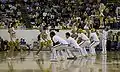 هلهلهچیان دانشگاه جرجتاون در حین عملیات بین نیمه یک مسابقه بسکتبال