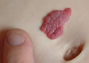 ضایعات مادرزادی اغلب بدون درمان نیز محو میشوند. در صورت عدم بهبودی خودبخود با استفاده از کرمهای زیبایی مخفی کننده، تابش تشعشع یونیزهکننده (رادیوتراپی و لیزر)، سوزانیدن و سپس ترمیم کردن و انجام عمل جراحی ضایعات درمان میشوند.