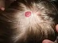 Hemangioma on the scalp of a two-year-old female, in the "rest stage"