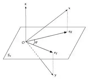 تعبیر هندسی همبستگی جزئی: همبستگی جزئی همبستگی بین دو بردار باقیمانده rX و rY را پیدا میکند که مولفهٔ در راستای بردار سوم z آنها حذف شدهاست.