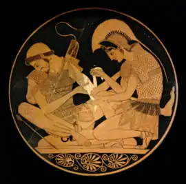 آیسخولوس در تراژدی مورمیدون ها آشیل را در قامت محافظ [ــِـ پاتروکلوس] توصیف کرده است چرا که به کینخواهی خون معشوقش دست یازیده بود، هرچند که خدایان به وی گفتند اینکار به مرگ خودش می انجامد (و این بدان معناست که آیسخولوس، پاتروکلوس را اِرومنوس می داند). از دیگر سو، شخصیت فایدروس در ضیافت افلاطون بر این ادعا پای می فشرد که هومر بر زیبایی آشیل تأکید دارد و همین امر وی _ و نه پاتروکلوس _ را در قامت اِرومنوس می نمایاند.[12]