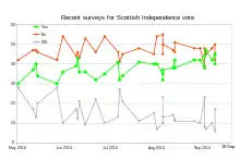 | ۱۰–۱۳ سپتامبر | ICM/Scotland on Sunday | ۱٬۰۰۲ | ۳۲٪ | ۴۹٪ | ۱۹٪ | ۱۷٪ |