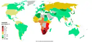 ایدز یک بیماری همهگیر جهانی است.[1] تا سال ۲۰۱۰ حدود ۳۴ میلیون نفر در دنیا مبتلا به HIV بودهاند.[2] از این تعداد تقریباً ۱۶٫۸ میلیون زن و ۳٫۴ میلیون زیر ۱۵ سال بودهاند.[2] نتیجه آن حدود ۱٫۸ میلیون مرگ در سال ۲۰۱۰ بوده که این مقدار نسبت به سال ۲۰۰۱ که ۳٫۱ میلیون نفر بوده، کاهش یافتهاست.[2]