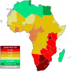 ایدز در آفریقا، خاستگاه این بیماری به صورت یک اپیدمی فراگیر درآمده است که رفته رفته به صورت مهمترین عامل جلوگیری از پاگیری اقتصادها و حکومتهای پایدار در این قاره جلوهگر میشود،۲۶ میلیون از بیش از ۴۰ میلیون انسان حامل ویروس اچآیوی آفریقائیاند و تا به حا ل بیش از ۲۵ میلیون نفر در این قاره جان خود را به دلیل ابتلای به آن از دست دادهاند. هرچند زندگی همراه با آلودگی به ویروس اچآیوی ممکن است ولی در عمل، در کشورهای فقیر جهان تنها ۱/۶میلیون نفر به داروهای کنترل ایدز دست مییابند. عدم توانایی مالی برای تأمین هزینههای سنگین این داروها برای عده بسیار زیادی از مبتلایان منجر به عدم آغاز پروسه درمان میگردد و مطابق آمار بیشتر کسانی که بر اثر کمبود پول از بیماری ایدز میمیرند، در آفریقا و در جنوب صحرا زندگی میکنند. بیشتر آنان زنان هستند که پس از مرگ، کودکانشان بیسرپرست میمانند.[11]