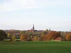 View towards St Jude's church in Hampstead Garden Suburb from the Heath extension