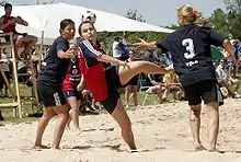 مشارکتکنندگان ویکیپدیا. «Beach handball». در دانشنامهٔ ویکیپدیای انگلیسی، بازبینیشده در ۲ ژانویه ۲۰۱۱.