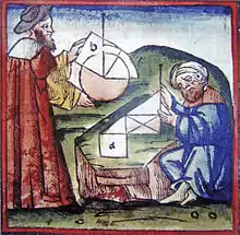 در قرون وسطی، ریاضیات جهان اسلام به توسعه هندسه، بهخصوص هندسه جبری کمک نمود.[22][23] الماهانی (مرگ در ۸۵۳ میلادی)، ایده تقلیل مسائل هندسی چون تضعیف مکعب به مسائلی در جبر را درک نموده بود.[24] ثابت بن قره (در لاتین به Thebit شناخته میشود) (۸۳۶–۹۰۱ میلادی) با کاربردهای اعمال حسابی در نسبتهای کمیتهای هندسی درگیر بود و به توسعه هندسه تحلیلی کمک نمود.[25] عمر خیام (۱۰۴۸–۱۱۳۱ میلادی)، راه حلهایی را برای معادلات مکعبی پیدا نمود.[26] قضایای ابن هیثم (Alhazen)، عمر خیام و خواجه نصیرالدین طوسی در ارتباط با چهارضلعیها، شامل چهارضلعیهای لامبرت و ساکری، جزو اولین نتایج هندسه هذلولوی بودند که به همراه فرضیات جایگزینشان همچون اصل پلیفیر، در میان هندسهدانان اروپایی شامل ویتلو (حدود ۱۲۳۰ تا ۱۳۱۴ میلادی)، ابن گرشوم (۱۲۸۸ تا ۱۳۴۴ میلادی)، آلفونسو، جان والیس، و جیرولامو ساکری، تأثیر قابل توجهی جهت توسعه هندسه نااقلیدسی داشتند.[27]
