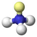 آرایش جفت الکترون در آمونیاک چهاروجهی است، دو الکترون ناپیوندی به رنگ زرد و هیدروژن به رنگ سفید نشان داده شدهاست.
