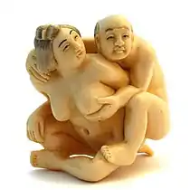 یک نوع هنر اروتیک در مجسمهسازی به شیوهٔ نتسوکه، مجسمهای ساخته شده از عاج ماموت در ژاپن