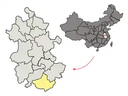 | Municipal seat | Tunxi District (۲۹°۴۲′ شمالی ۱۱۸°۱۸′ شرقی) |