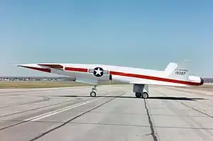 June 8, 1959 | Hypersonic (Mach 6), high-altitude (۳۵۰٬۰۰۰ فوت (۱۱۰٬۰۰۰ متر)) testing. First manned hypersonic aircraft; capable of suborbital spaceflight.[20] |