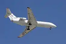 یک فروند یاکوولف یاک-۴۲ فارس ایر قشم در حال فرود در فرودگاه بینالمللی دوبی، امارات متحده عربی. (۲۰۱۲)