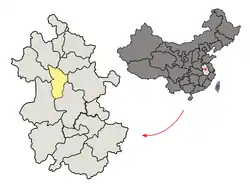 | Municipal seat | Tianjia'an District (۳۲°۳۷′ شمالی ۱۱۶°۵۹′ شرقی) |