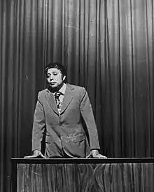 ![]() کاووسی در سخنرانی در دانشکده هنرهای دراماتیک، تهران، دهه ۱۹۷۰م | |
