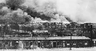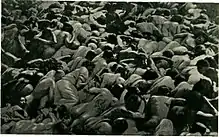 ![]() ![]() ![]() ![]() ![]() بالا، پادساعتگرد: آتشسوزی گتوی ورشو، مه ۱۹۴۳ • آینزاتسگروپن در حال تیراندازی به زنان گتو میزوچ، ۱۹۴۲ • گزینش افرادی که میبایست بلافاصله پس از ورودشان به آشوویتس دو-برکناو مستقیم به اتاقهای گاز فرستاده میشدند • یهودیانی که در جریان خیزش گتوی ورشو زندانی شدهاند توسط وافن اساس به اومشلاگپلاتز هدایت میشوند • کودکان گتوی ووچ به اردوگاه مرگ خلمنو تبعید میشوند، ۱۹۴۲ | |