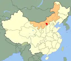 ![]() Hohhot (red) in Inner Mongolia (orange) | |