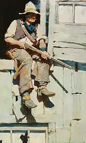 هوپالانگ دستور میگیرد، نقاشی شده توسط فرانک شونور برای داستانی در ۱۹۰۵ بنام “نزاع در باسک اسکین”