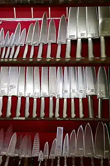 انواع هوچو یا کارد آشپزخانهٔ ژاپنی در فروشگاهی در توکیو