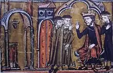![]() پادشاه بالدوین دوم (اورشلیم)، معبد سلیمان را به هوگو دی پینز و گودفری دی سنت-اومر میسپارد | |