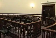جایگاه خالی هیئت منصفه در یک دادگاه در شهرستان پرشینگ، نوادا، آمریکا