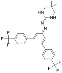 2(1H)-pyrimidinone tetrahydro-55-dimethyl- (3-(4-(trifluoromethyl)phenyl) -1-(2-(4-(trifluoromethyl)phenyl)ethenyl) -2-propenylidene)hydrazone | |