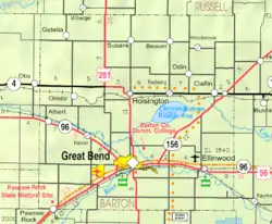 ![]() KDOT map of شهرستان بارتون، کانزاس (legend) | |