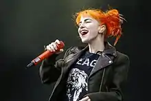 ![]() هیلی ویلیامز در حال اجرا بهعنوان عضوی از گروه پرامور در فستیوال راک ام رینگ و راک آیم پارک در نورمبرگ، آلمان در سال ۲۰۱۳ | |