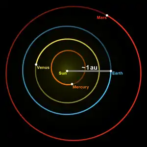 واحد نجومی[1] یا یکای اخترشناسیک که با نماد au،[2][3][4] [5]ua و AU نمایش داده میشود یکی از یکاهای طول است. بیشترین دوری زمین تا خورشید که نزدیک ۱۵۰٬۰۰۰٬۰۰۰ کیلومتر (۹۳٬۰۰۰٬۰۰۰ مایل) برابر با یک واحد نجومی در نظر گرفته شدهاست.