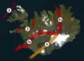نوار زرد رنگ حوزهٔ آتشفشانی ایسلند را نشان میدهد. چندین آتشفشان فعال در زیر واختنایوکوت وجود دارد.