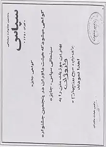 - امید، جمال (۱۳۷۷). فرهنگ سینمای ایران. تهران: مؤسسه انتشارات نگاه. ص. ۷۴–۴۷۳. شابک ۹۶۴-۶۱۷۴-۸۹-۲.