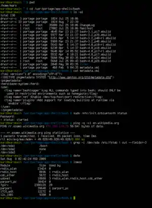 خط فرمان لینوکس (بش) در نرمافزار گنوم ترمینال، توزیع فدورا