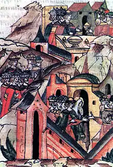 تیمور در سال ۱۳۹۵ به زمینهای اسلاوها یورش برد و تمامی مناطق اطراف رودخانه ولگا را ویران نمود اما به محدوده مسکو نفوذ نکرد.