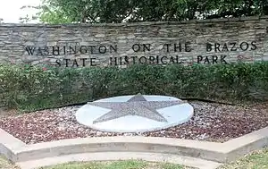 ![]() Washington-on-the-Brazos State Historical Park sign | |