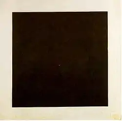 او بعداً نظریه خود را در کتابی توضیح داد. مالهویچ اولین نقاشی سوپرهماتیست خود را به صورت مربعی سیاه بر زمینه سفید ارائه کرد؛ و دربارهٔ آن نوشت: «این یک مربع تهی نیست، بلکه تجربهٔ غیر عینیت است… علو احساس محض است…»
