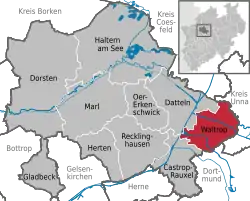 موقعیت Waltrop در منطقه Recklinghausen ![]() | |