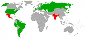 کشورهای شرکت کننده با رنگ سبز و کشورهای انصراف دهنده با رنگ قرمز مشخص شدهاند.