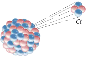 واپاشی آلفا یکی از واپاشیهای مهم فیزیک است که غالباً به صورت یک هسته هلیوم پرتوزایی میشود و از عدد اتمی دو شماره کم میشود برای نمونه: