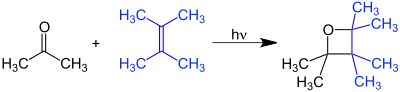 شمای کلی از یک نمونه واکنش پاترنو–بوچی بین یک کتون و یک آلکن